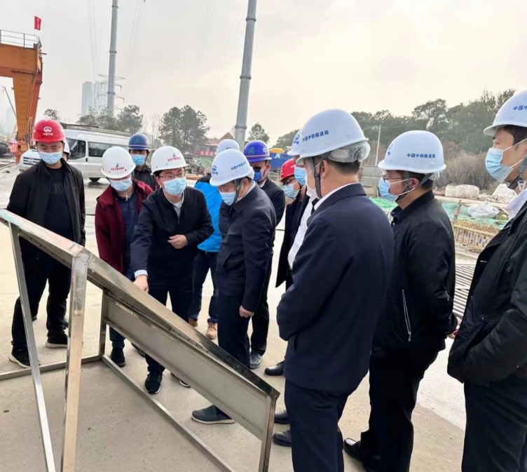 11月26日上午,,,,,,市住建局局长李勇、副局长饶良富一行深入丹霞路项目现场举行调研,,,,,,南昌市建设投资集团基础设施项目治理有限公司、监理单位及施工单位相关认真人陪同。。。。。。。